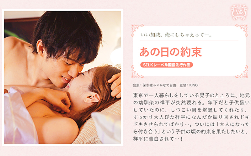 あの日の約束|品番393086│SILK 2026.02.22 発売日 : 2022-06-17収録 : 42分ジャンル : 女性向け 美男優 女流監督 ドラマ HD(ハイビジョン) 出演者 : かなで自由 保志健斗 監督 : KINO メーカー : SILK LABO レーベル : SILK 品番 : 393086価格 : ¥499~